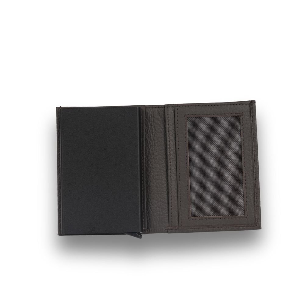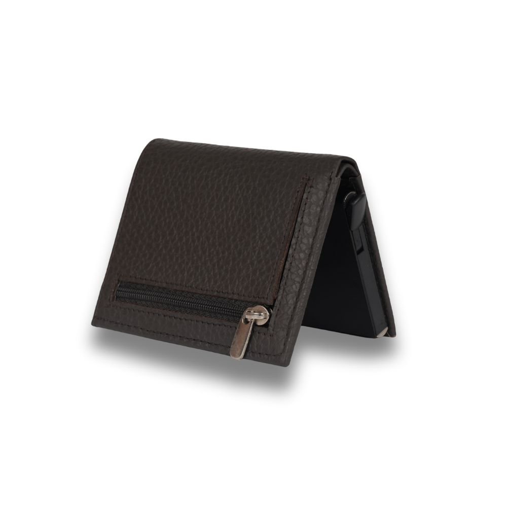 Designed for everyday convenience, the wallet features a built-in pop-up card holder that allows quick and easy access to your cards with a single push, while maintaining a sleek, compact silhouette.
